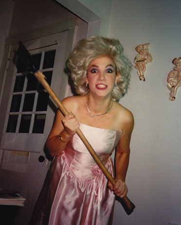 Aunt Pinky, with her towering cotton candy hair, arrives. Actress Barri Evans was extremely pregnant when we shot this scene