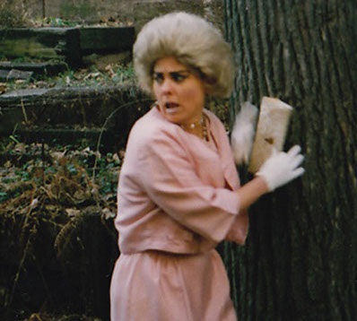 We shot footage of her from the different phases of Sugar’s career, from 60s starlet terrorized in the film-with-a-film The Crawling Ear, to slightly long-in-the-tooth “teenager” in Roller Disco Boogie Fever, to her sad commercial for Uncle Kreemy’s Donuts. Chris delivered, and many of our other stars stepped into roles very different from what they had done previously.