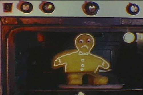 We had a gingerbread man puppet made of foam, and a script with a precocious child, an overbearing mother (to be played by stevie) and a silly nun (who would be Gabby Sanalitro). When our test footage came back, I realized my super-8 camera was malfunctioning and garbling sound. I had one place I would take my equipment to for fixing, but the results were hit or miss.