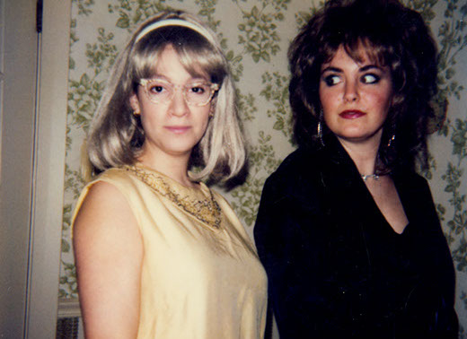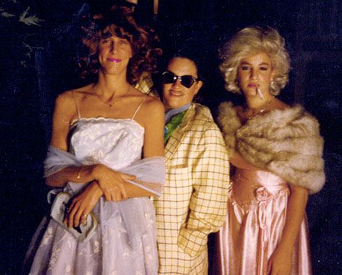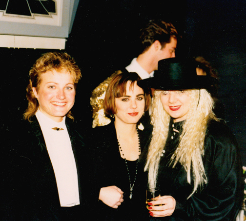 Karen Terrier, Christine Bouchard and Shannon Lastowski (Craig Goding in the back) in their 80s finery at the premiere at The Roxy, December 1989.