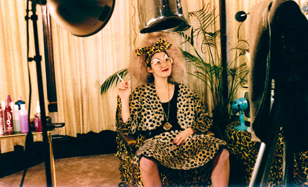 Aunt Pinky, with her towering cotton candy hair, arrives. Actress Barri Evans was extremely pregnant when we shot this scene