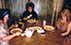 Fun family dinner time. We served the actors the most horrendous concoctions. The small bowl contains mud from the yard.