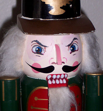 but here is a closeup look at the Nut Cracker that Linda painted to look even more evil than he already did.